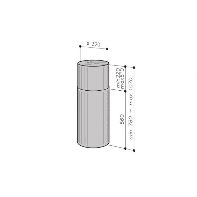 - pie griestiem stiprināms salas tipa modelis - saderīgs ar DC tipa ventilatoriem (maks. 260 V) - elektroniskā vadība - taimeris - ziemas starta funkcija - nominālā apgaismojuma jauda 5 W, 2 x LED (3000 K) - mazgājams metāla filtrs - atgādinājums par filtra tīrīšanu - kanāla diametrs 150/125 mm - 320 x 780-1070 mm (diametrs x augstums) Rekomendējamie DC tipa ventilatoru modeļi: Vilpe E-190, 220